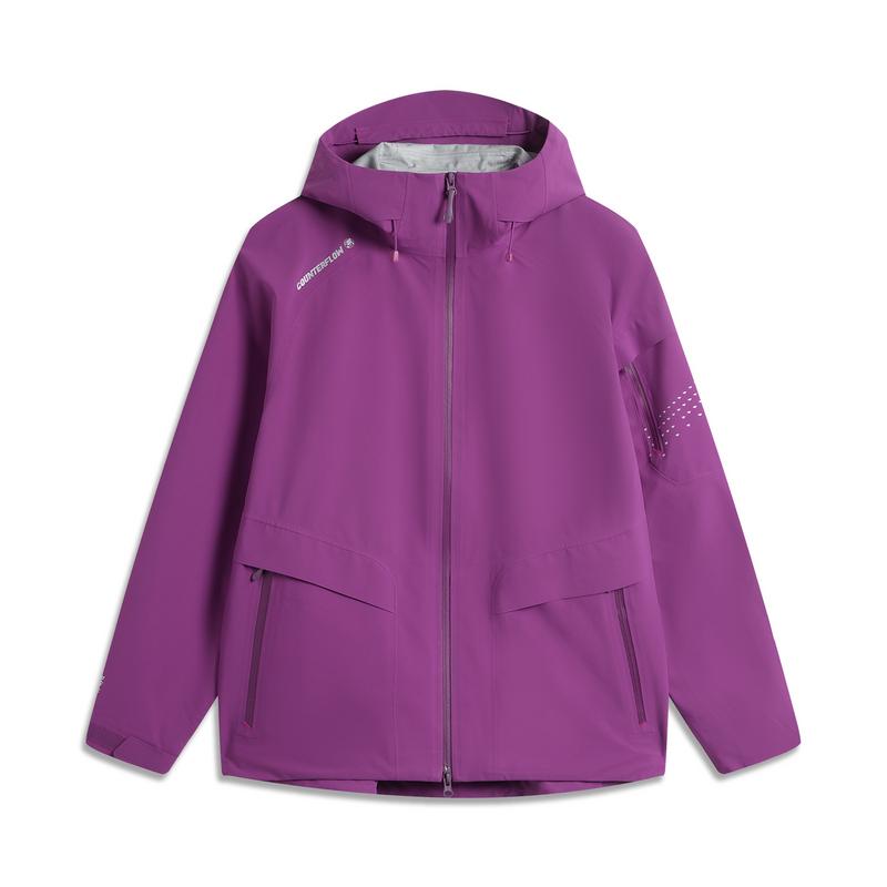Li Ning CF Su Wan Long Jia Series однотонная куртка с капюшоном для пешего туризма, водонепроницаемая ветрозащитная куртка унисекс, космически-фиолетовая AEMU047-2