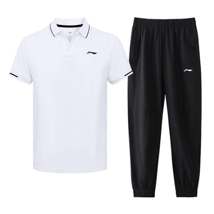 Li-Ning Однотонный свитер с короткими рукавами и логотипом, длинные брюки с манжетами на средней талии, повседневный спортивный комплект, спортивный комплект унисекс APLU771-2+AYKT551-7