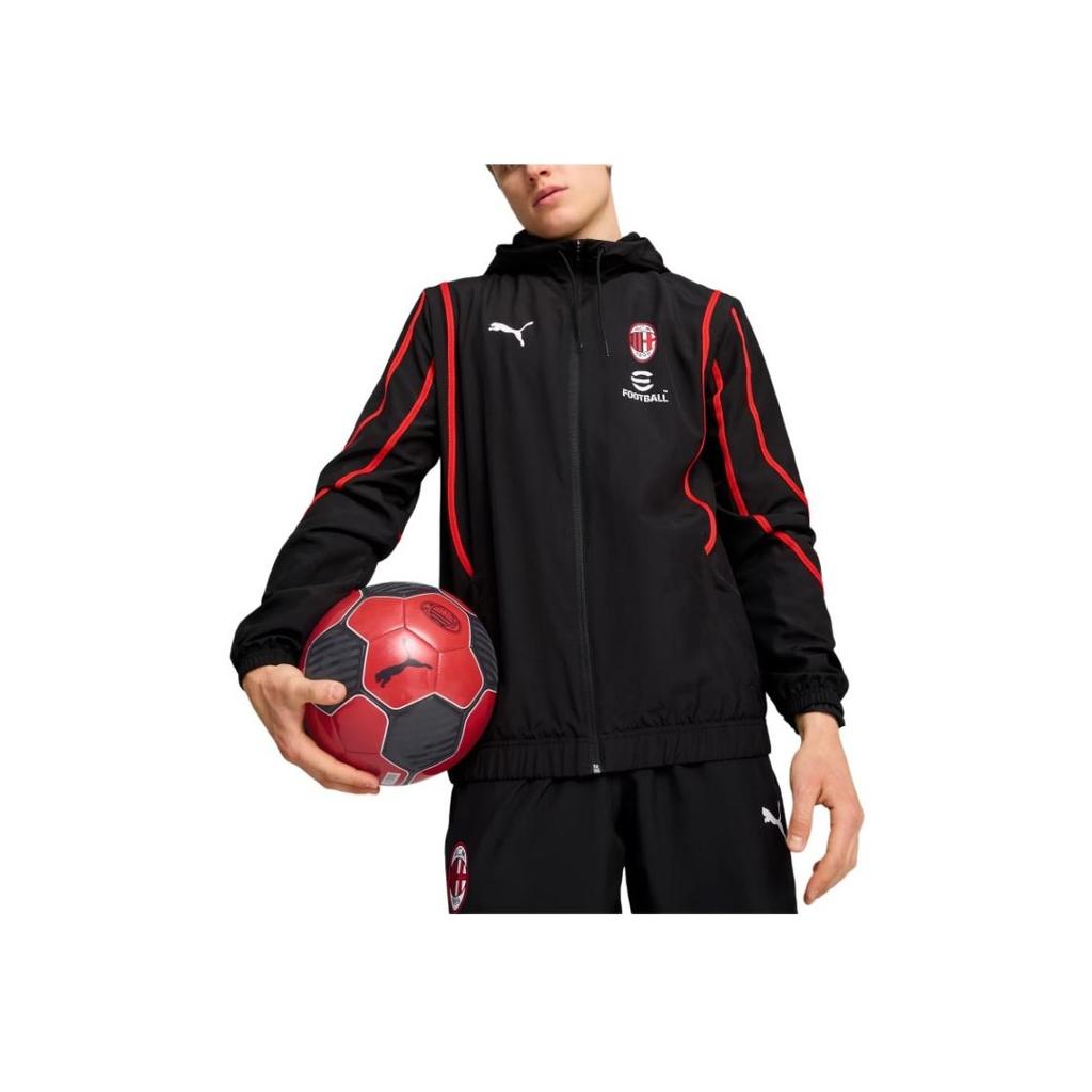 Puma Ac Milan Ss24 Logo Casual Hooded Long Sleeve Racing Vintage Jacket Men jackets Black Red 777716-04