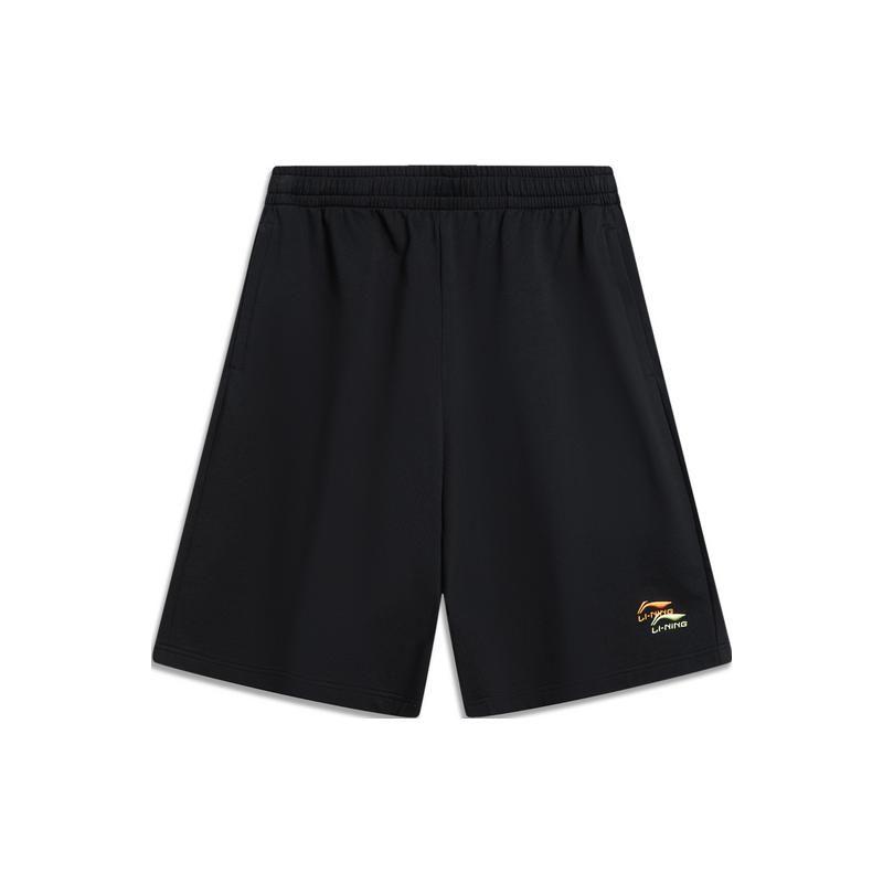 Li Ning Sports Fashion Series Простые дышащие удобные приятные для кожи однотонные трикотажные вышитые повседневные шорты мужские шорты черного цвета AKSU699-1