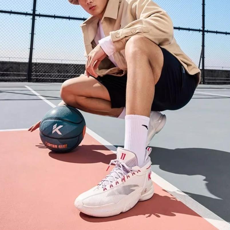 Anta Детские баскетбольные кроссовки KT9, удобные, повседневные, амортизирующие, износостойкие, высокие, детские баскетбольные кроссовки, белые, серые 312411130-5