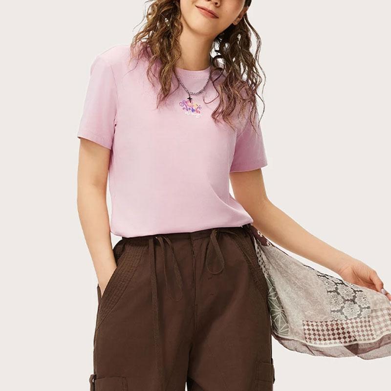 Футболка Li Ning Chinese Culture Series с принтом, повседневная, облегающая, с коротким рукавом, женская, цветочная, розовая, AHSU330-3