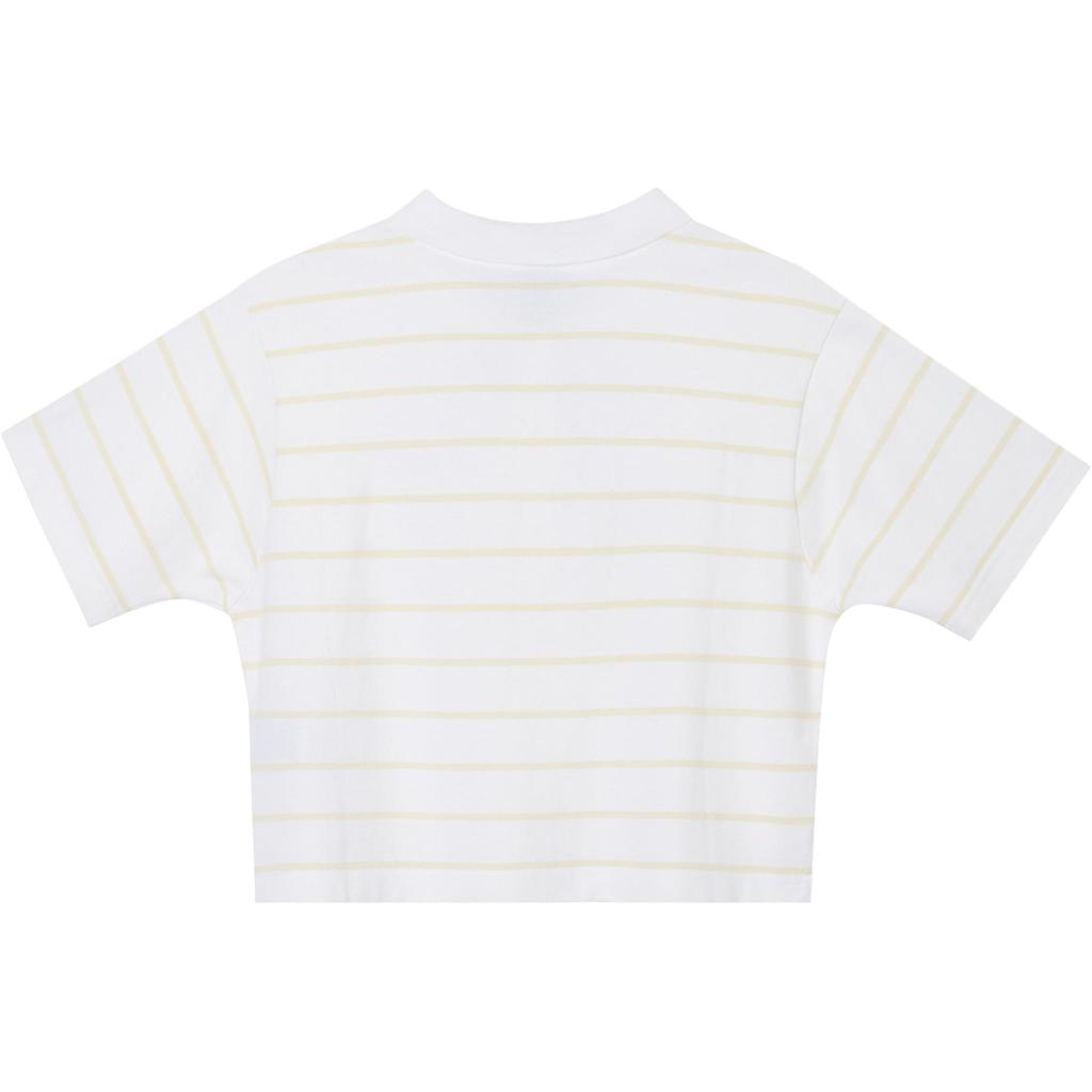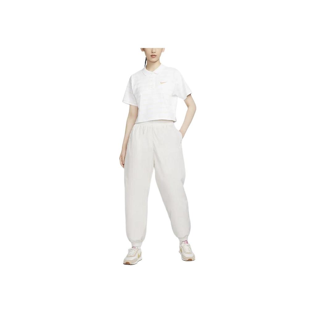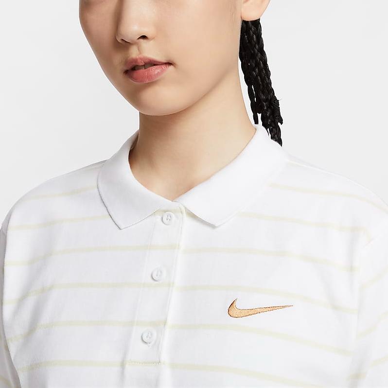 Nike Спортивная футболка с вышитым логотипом в полоску с коротким рукавом и заниженной линией плеч, женские футболки белого цвета HM4649-100
