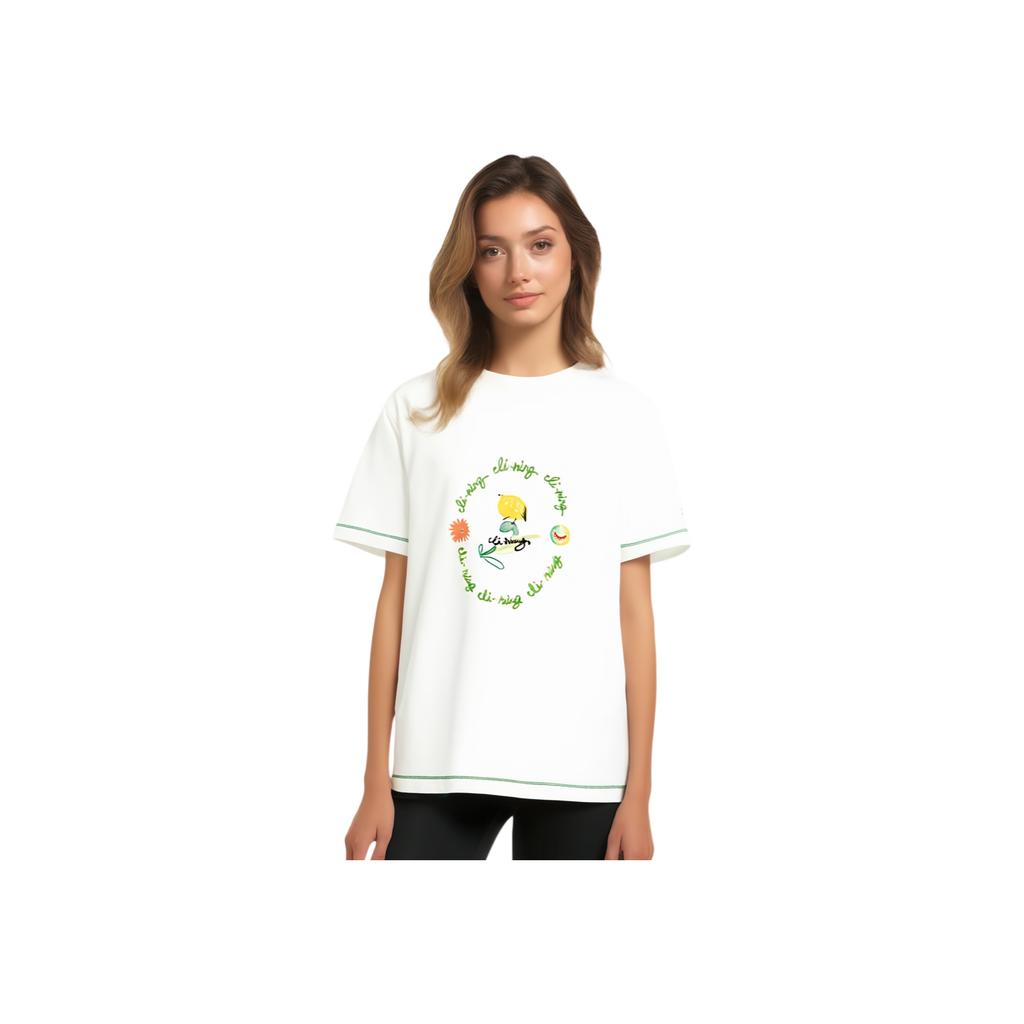 Li Ning Китайская культура Серия букв цветных блоков круглый вырез свитер спортивная футболка с коротким рукавом женская футболка Off-White AHSU332-1