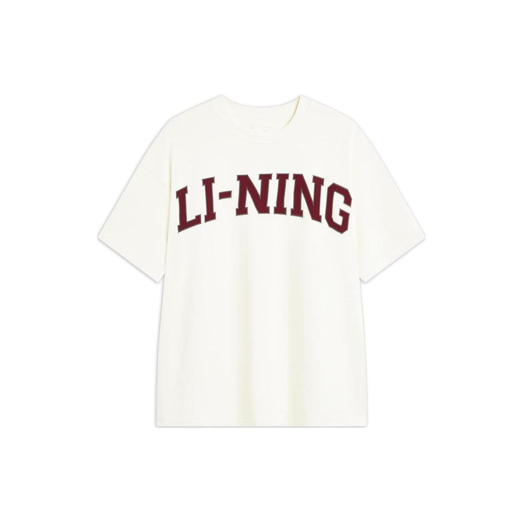 Li-Ning Футболка Weekend Youth American Vintage с круглым вырезом, повседневная, спортивная, свободная, летняя, с коротким рукавом, унисекс, топы, цвет не совсем белый AHSU653-1