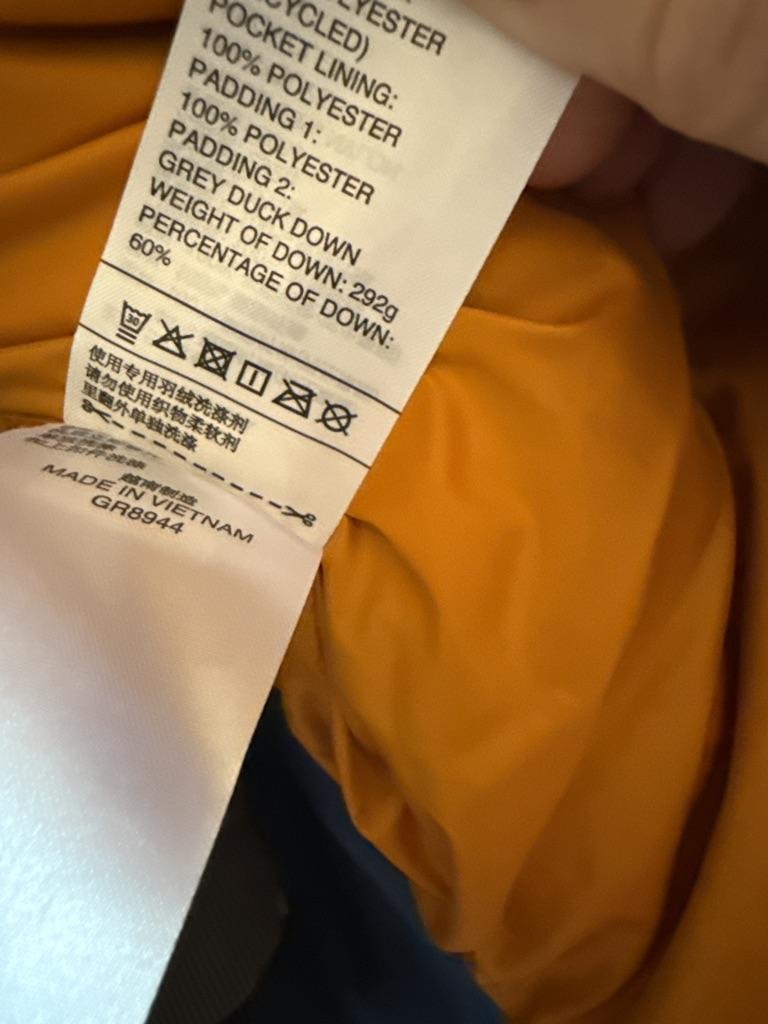 Очень жаль но куртка была порезана. Видно на каком-то этапе пересылки пытались проверить что в посылке и вспороли пакет. Заклеили скотчем порез и потом положили в новый пакет. На почте при получении внешний пакет был цел. Уже потом вынули и увидели порез. Очень обидно. Сама куртка хорошая.