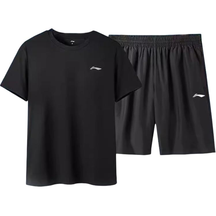 Li Ning однотонный круглый вырез свитер с коротким рукавом футболка и шорты средней талии повседневный спортивный комплект мужские комплекты черный YATU077-4