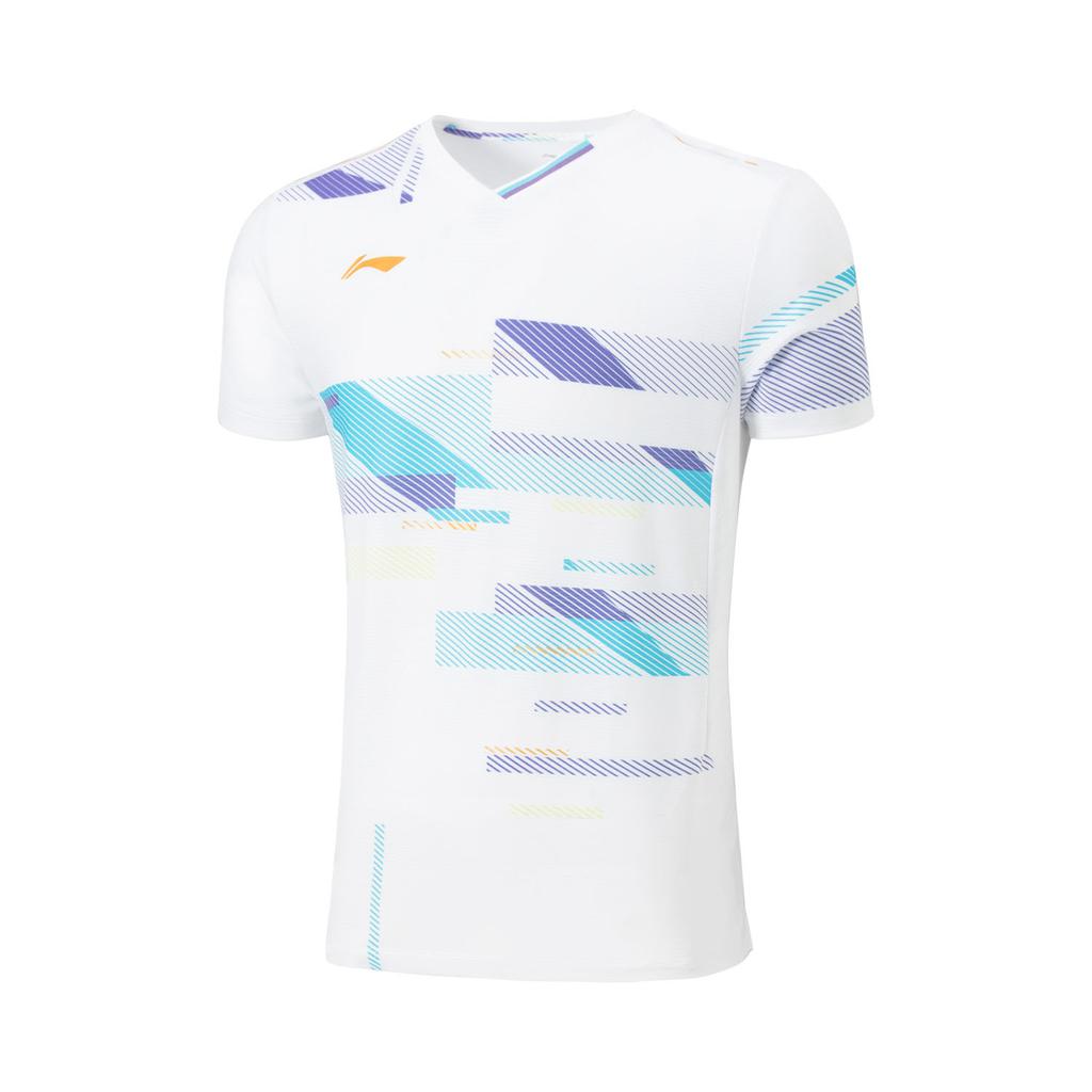 Футболка для бадминтона Li Ning Badminton Series с V-образным вырезом и принтом, удобная, дышащая, универсальная, с коротким рукавом, унисекс, топы стандартного белого цвета AAYV031-2