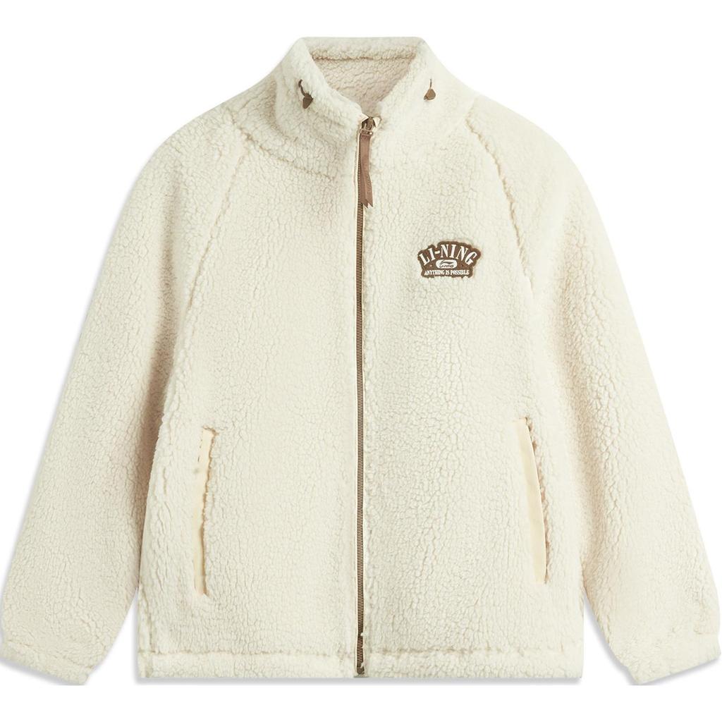Li-Ning Удобная повседневная флисовая куртка в стиле минимализма с воротником-стойкой на молнии, женские куртки Swan-White AFDUD66-1
