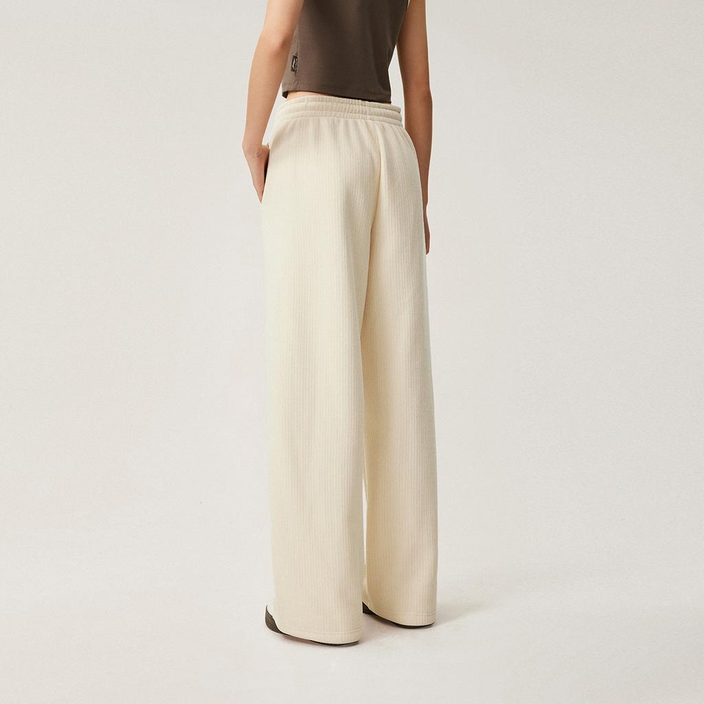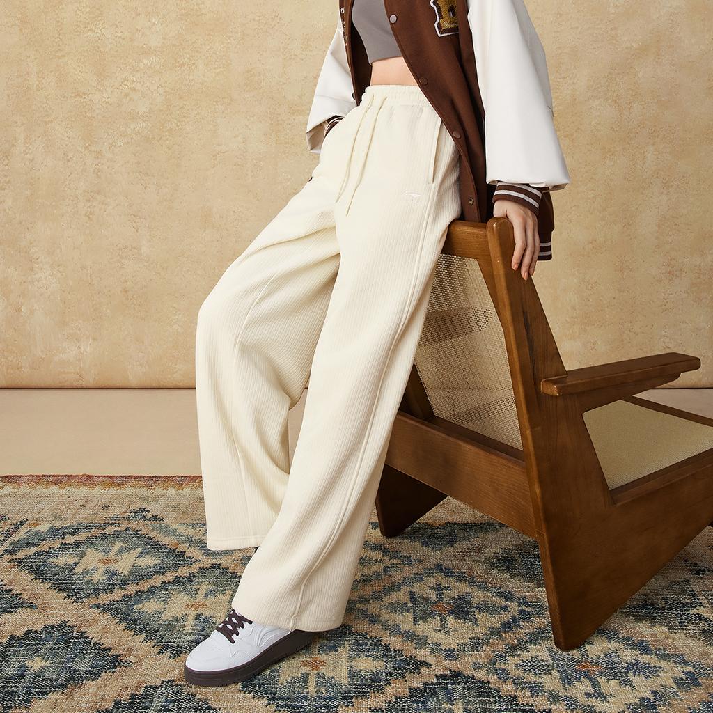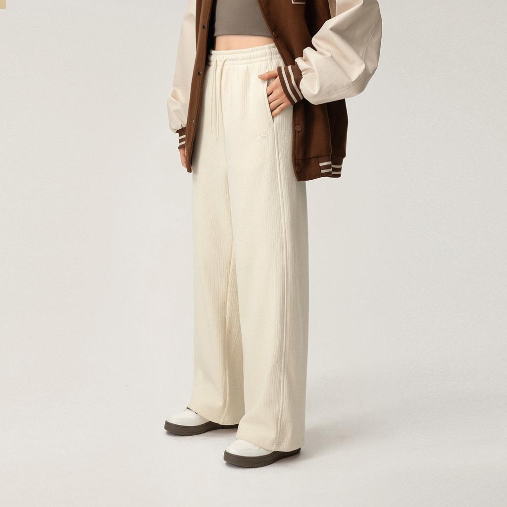 Li Ning Sports Lifestyle Series однотонные прямые теплые флисовые удобные повседневные брюки женские низы лебедь-белый AKLUB48-1