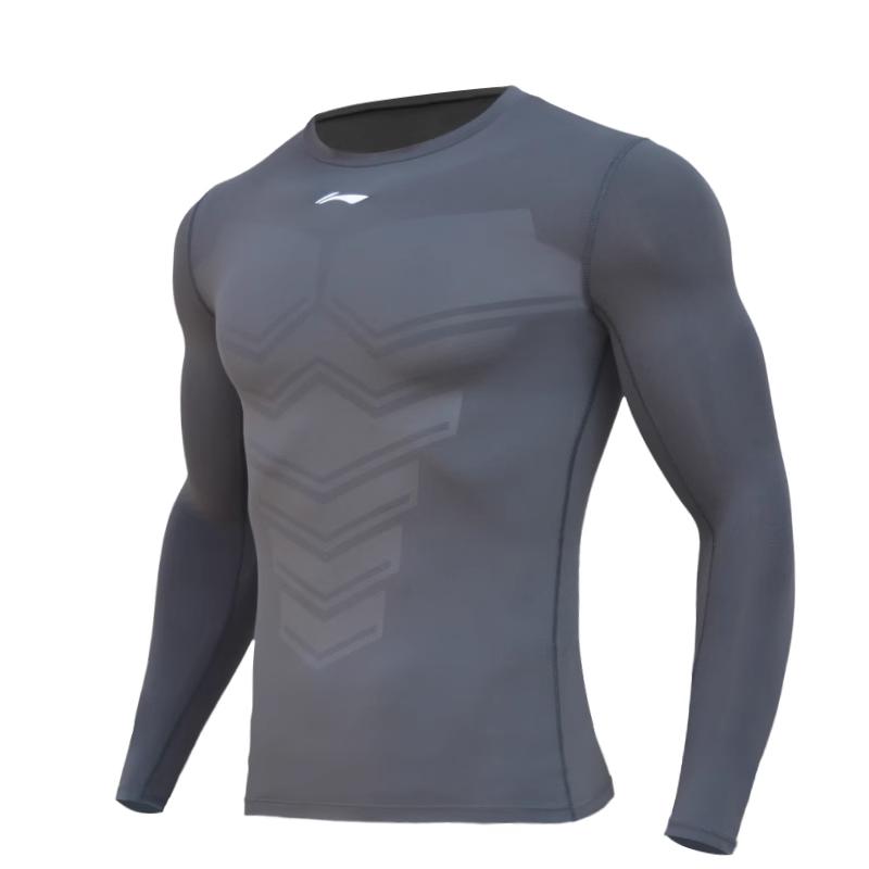 Li Ning Plain Logo Print Sports Training Tight Quick-Dry Fitness Shirt Men tops Gray AUDR023-4