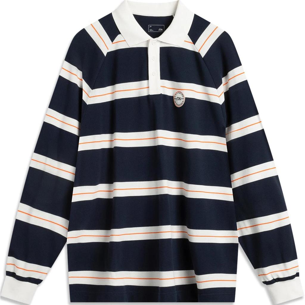 Li-Ning Удобная дышащая полосатая повседневная рубашка поло с длинным рукавом для мужчин, темно-синего цвета APLU267-1