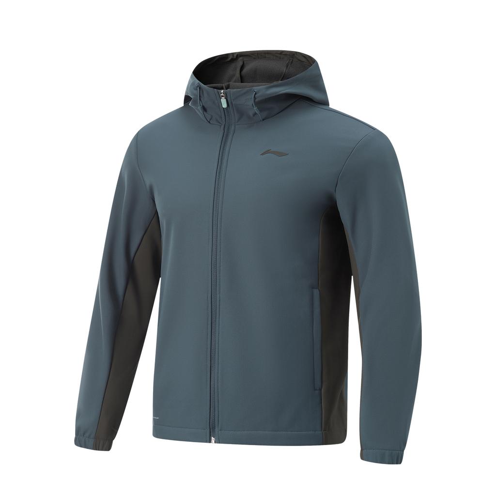 Мужская ветровка Li Ning с флисовой подкладкой, однотонная, с капюшоном и застежкой-молнией, темно-синяя, AFDU529-4