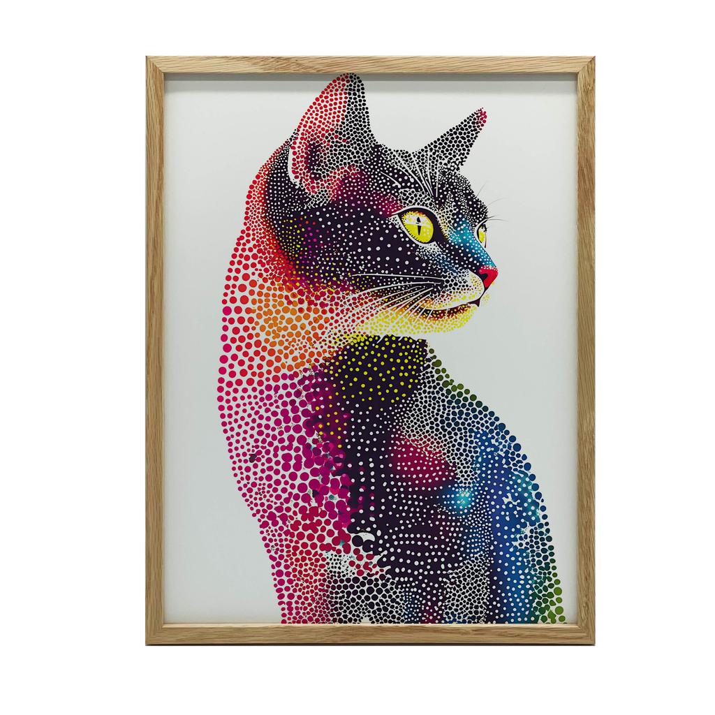 1x Plakat Kot w Kolorowej Mozaice, 40x50 cm, rama aluminiowa czarna, papier matowy 230 gsm