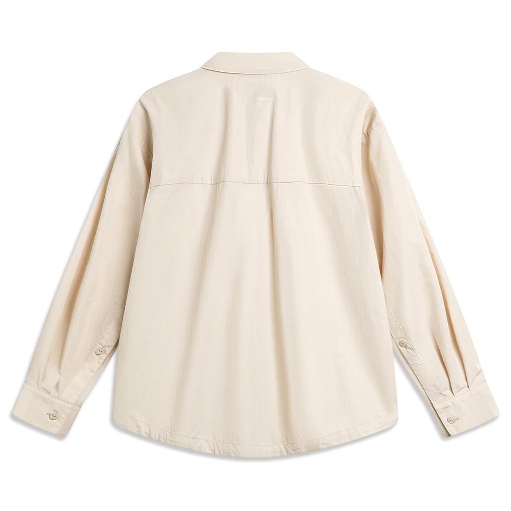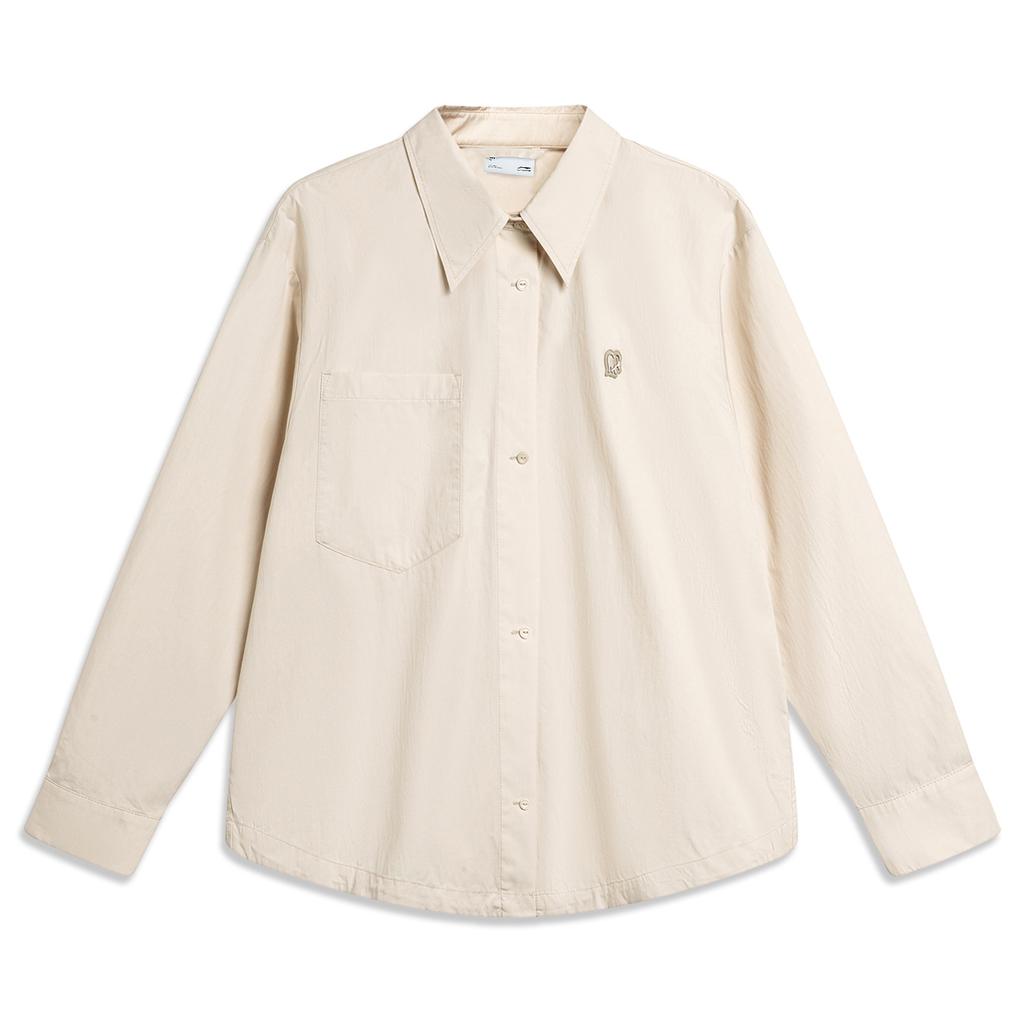 Li Ning Plain однобортная рубашка с заостренным воротником и длинным рукавом женские рубашки овсяно-серого цвета ASHU460-3