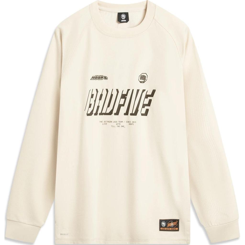 Li-Ning Футболка Anti-Five Series Letter с круглым вырезом, удобная, дышащая, универсальная, с длинным рукавом, мужские топы, рок-белый, серый ATLU137-2