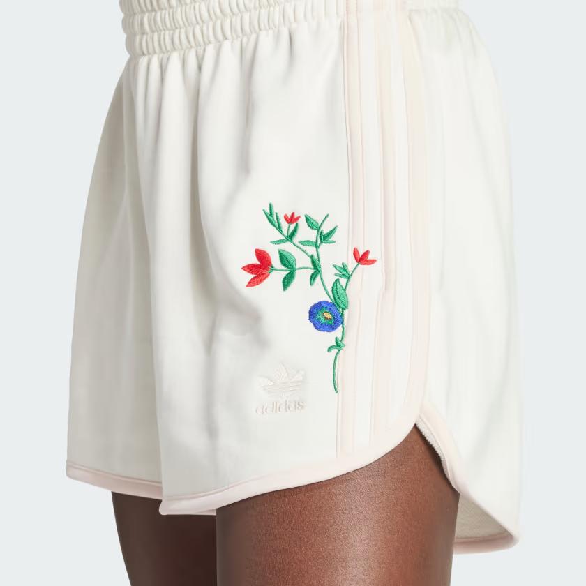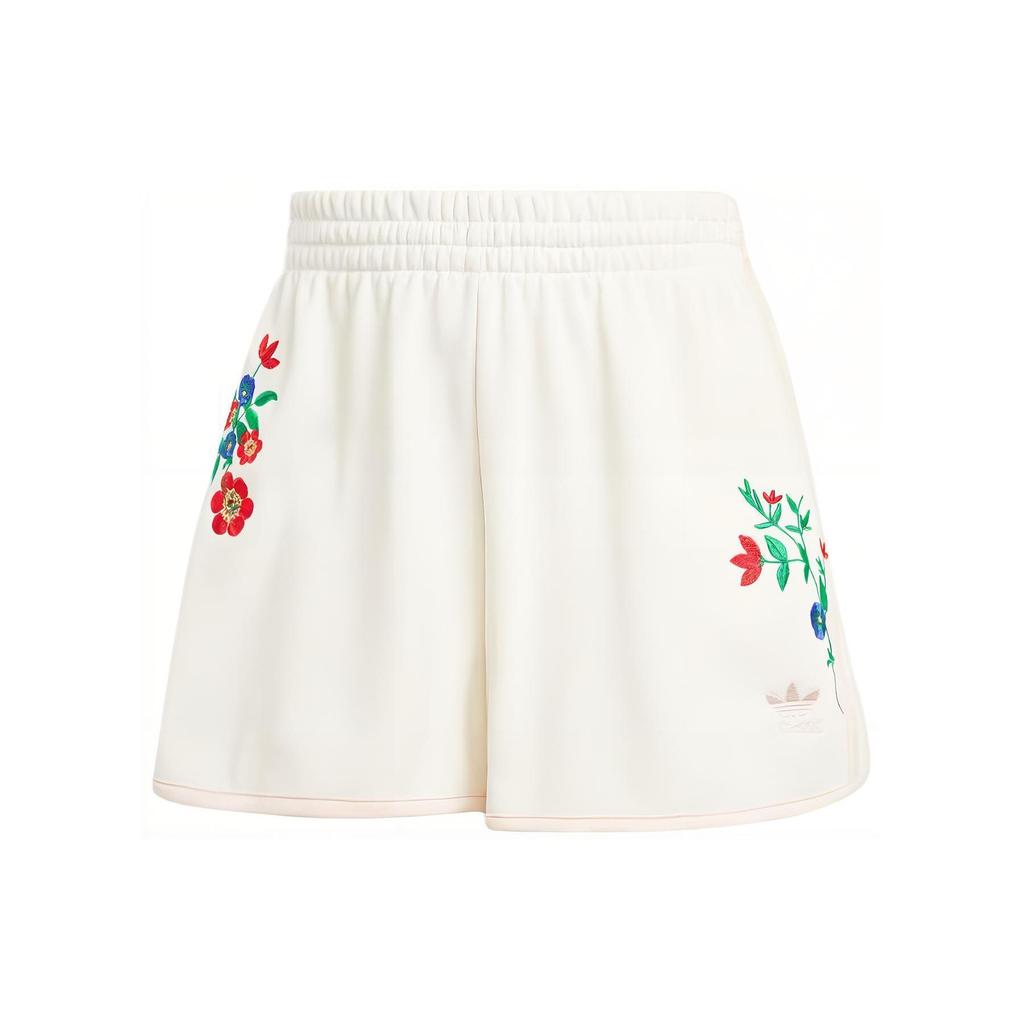 Adidas Оригинальные эластичные спортивные повседневные шорты с вышитым цветочным узором, женские шорты Cloud-White IS3869