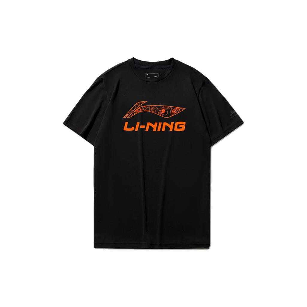Li Ning большой логотип напечатан круглый вырез свитер короткий рукав футболка унисекс топы черный AHSSD99-2