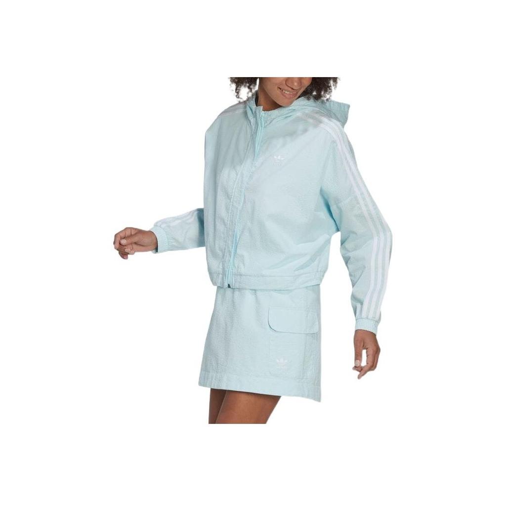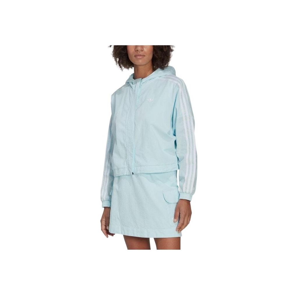 Adidas Оригинальная повседневная спортивная куртка с капюшоном и полосками на молнии с длинным рукавом, женская куртка синего цвета HL9305