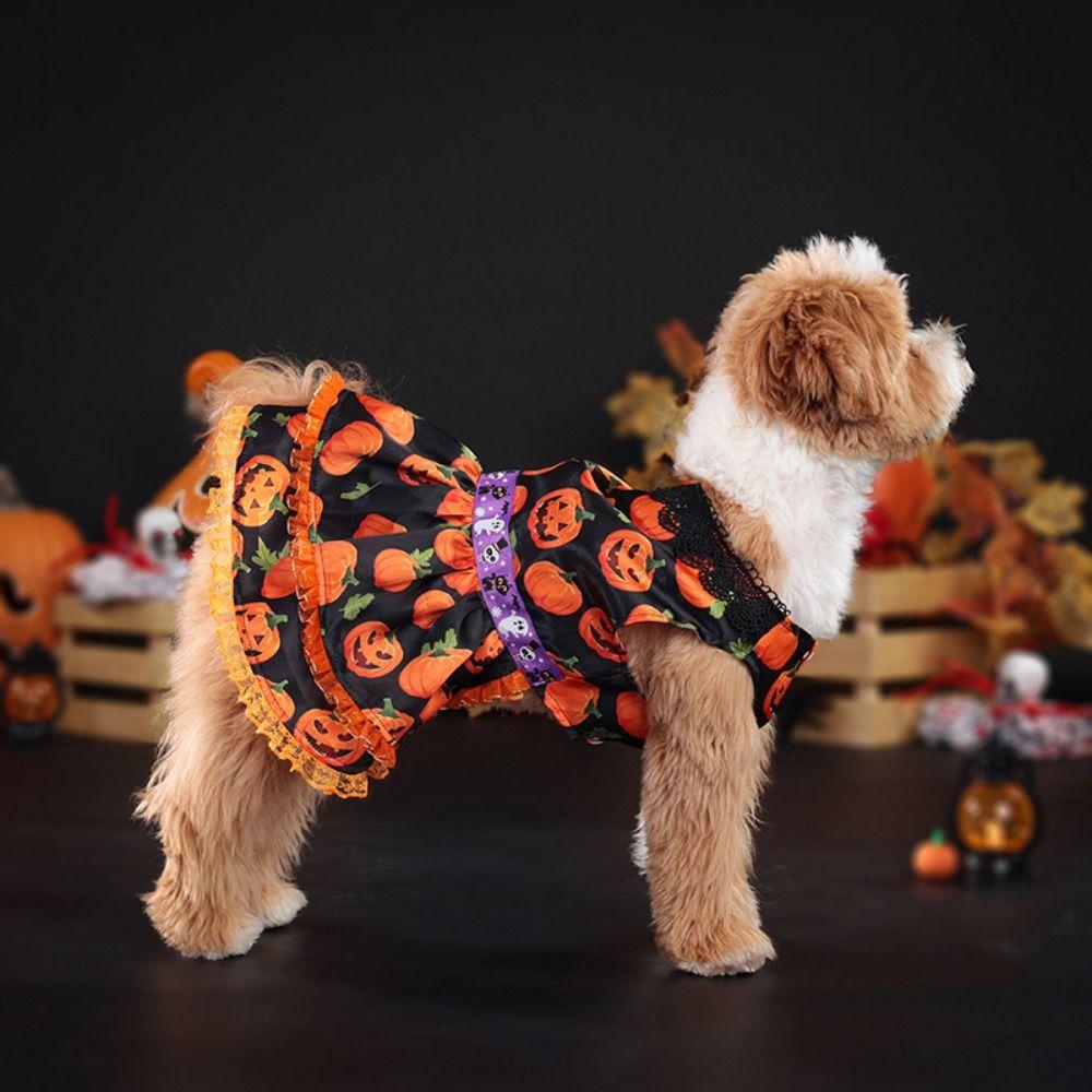 Творческий костюм собаки на Хэллоуин, милая юбка с кружевом в виде тыквы для собак, платье для Хэллоуина для домашних животных, вечеринка-косплей