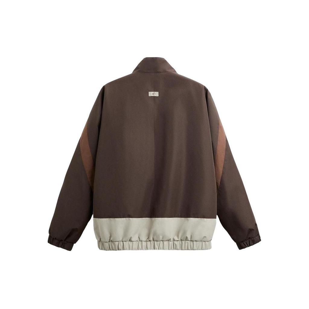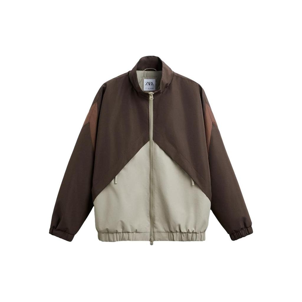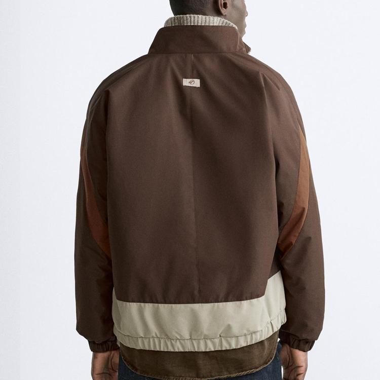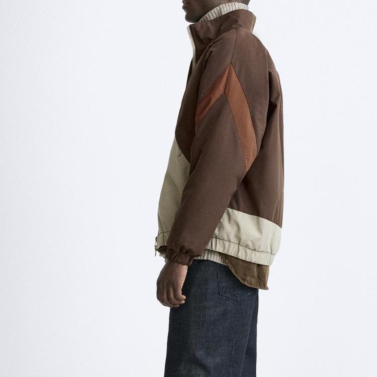 Zara Куртка мужская с цветным блоком, воротником-стойкой, молнией, толстая, с длинным рукавом, коричневая 8281365-472
