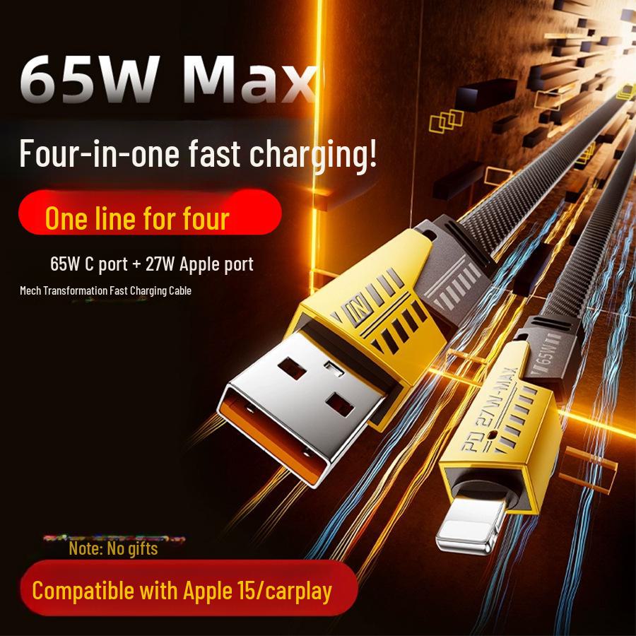 PD27W Двойной Магический 4-в-1 65 Вт Кабель для быстрой зарядки и передачи данных для автомобиля