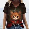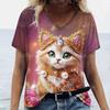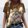 Футболка с принтом 3D-кота для женщин, повседневные футболки с коротким рукавом и V-образным вырезом, свободная одежда, милые топы для женщин