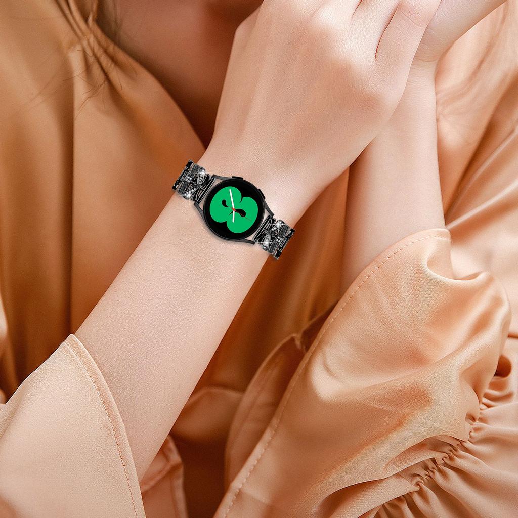 For Samsung Galaxy Watch6 40mm/44mm Rhinestones Decor 20mm Watch Strap Crown X-Shape Zinc Alloy Watchband