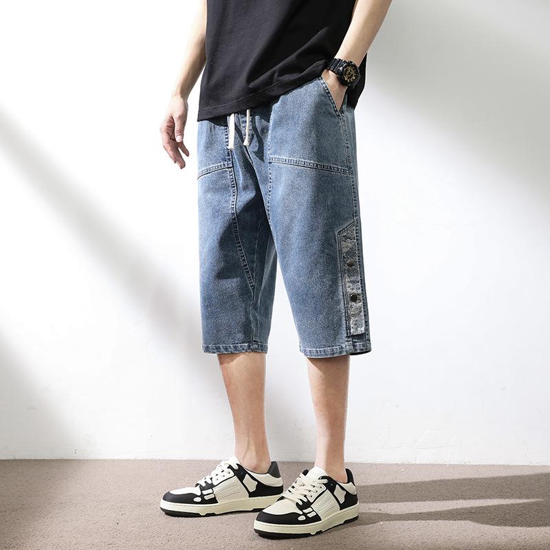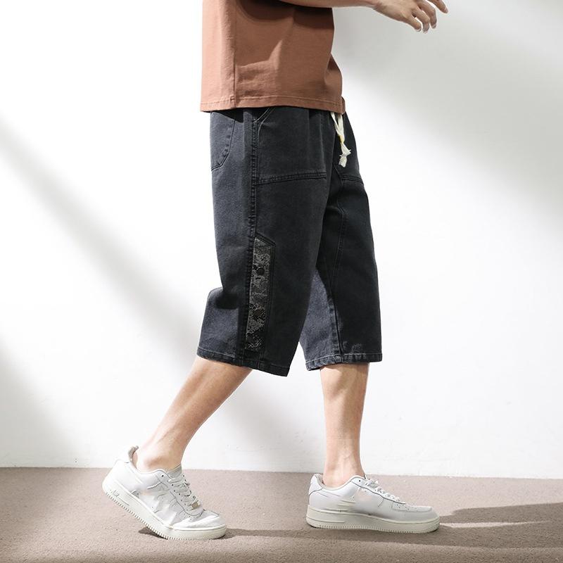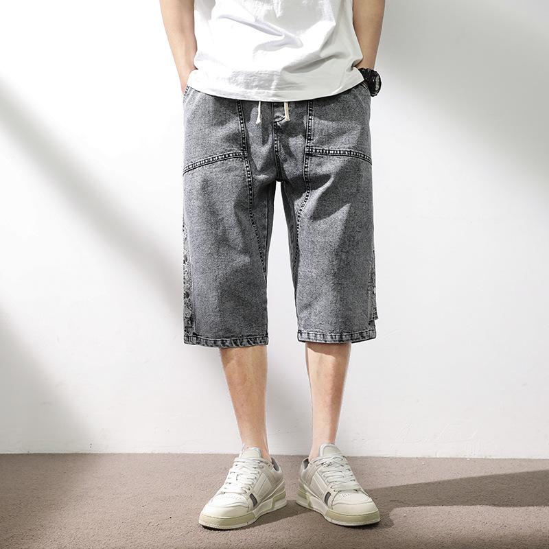 Летние мужские джинсы, бриджи из денима, повседневные шорты длиной до икры, прямые капри из стираного хлопка на шнурке, большой размер 8XL