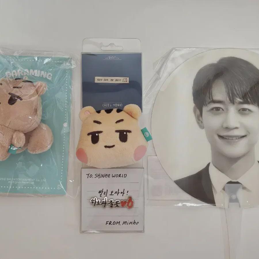 Коллекция товаров, таких как кукла Shinee Minho Daraming и антистрессовые мячи