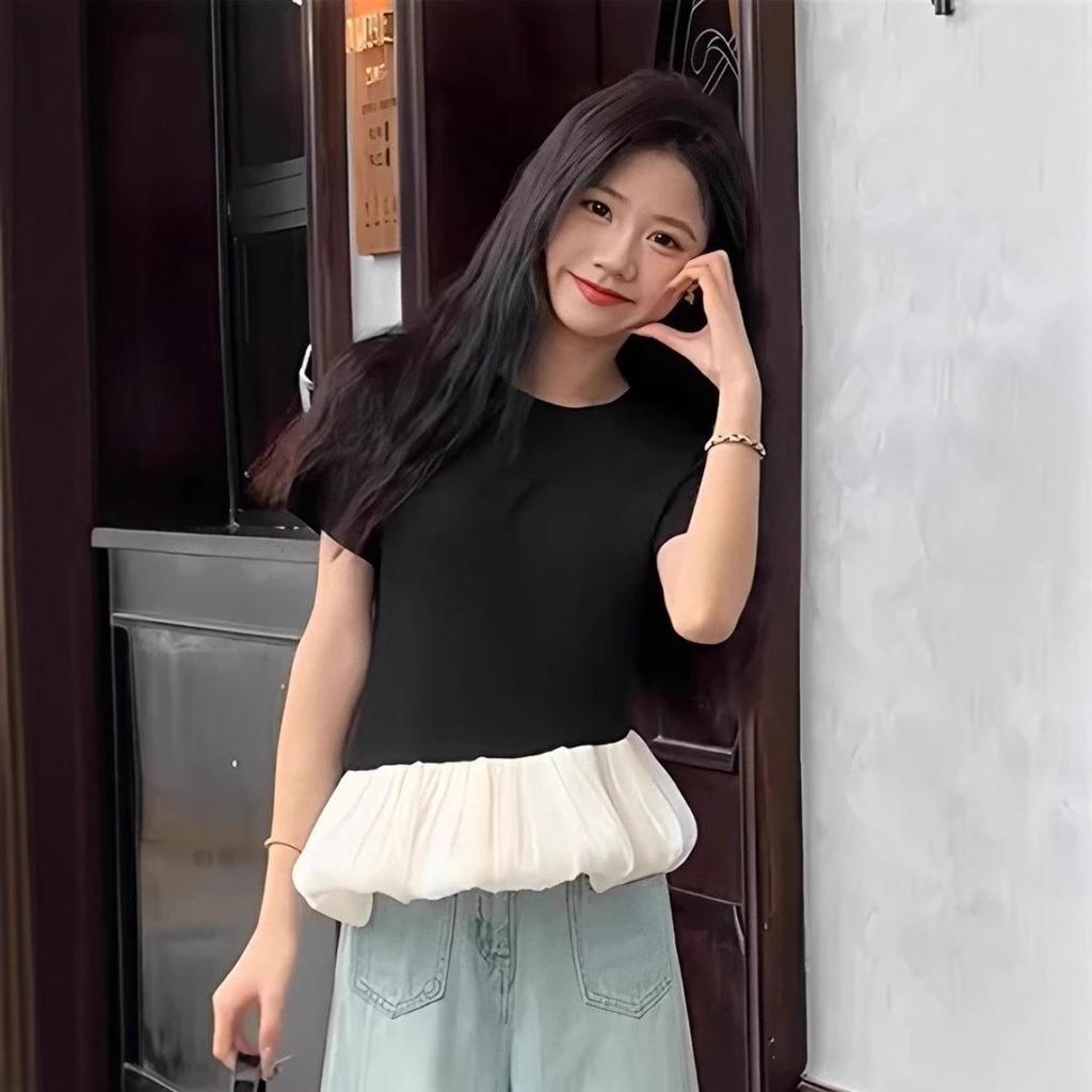 Дизайнерская футболка с круглым вырезом и короткими рукавами в балетном стиле для женщин на лето, приталенная базовая футболка-топ