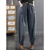 Женские весенне-осенние модели на четыре сезона, показывающие тонкую эластичную талию с дисковой пряжкой, брюки харен большого размера, повседневные джинсы