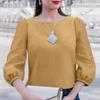 ZANZEA Женская повседневная блузка свободного кроя с круглым вырезом и рукавом 3/4