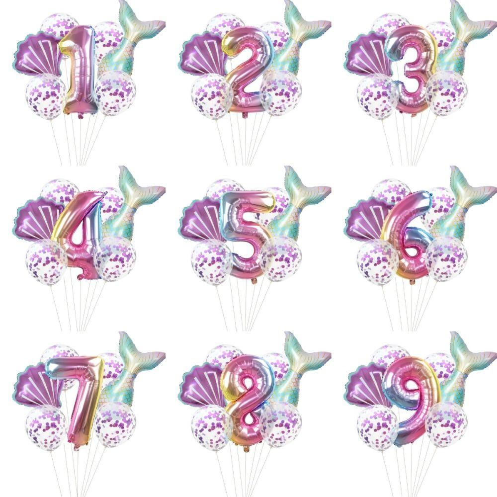 7 шт. 32-дюймовых шаров в виде цифр и русалочки для вечеринки на 1-9-й день рождения