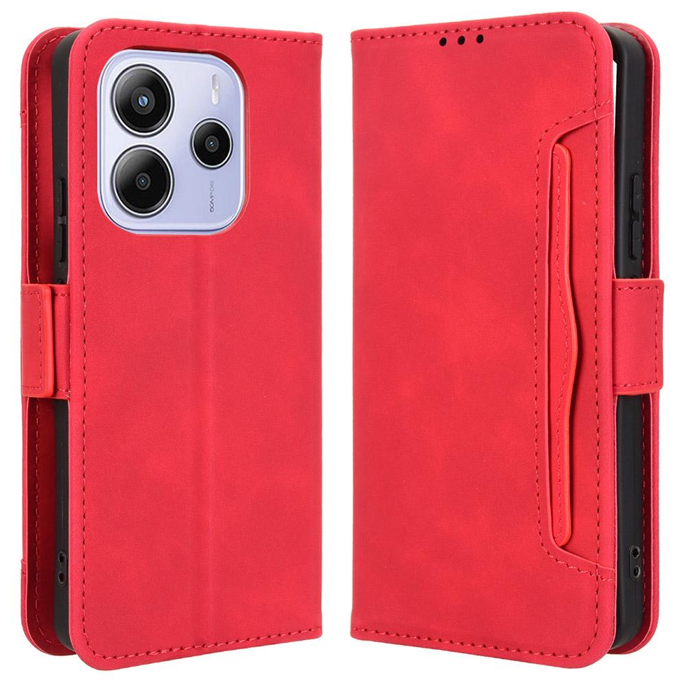 Для Xiaomi Redmi Note 14 4G (163,25x76,55x8,16 мм) Кожаный чехол-портмоне для телефона с несколькими отделениями для карт.