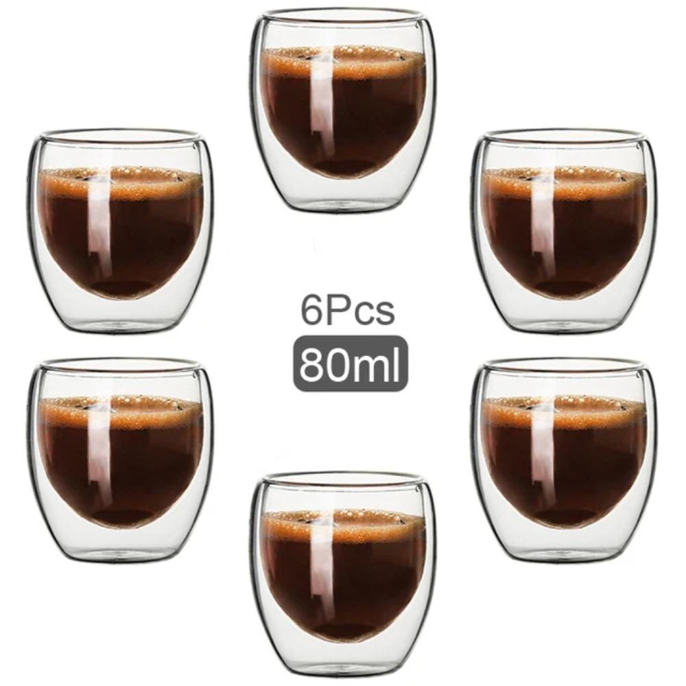6 шт., 80 мл стеклянные кофейные кружки, стеклянные кофейные чашки с двойными стенками, изолированные чашки для эспрессо, стаканчики для холодных напитков, вина, шоты, чайные чашки