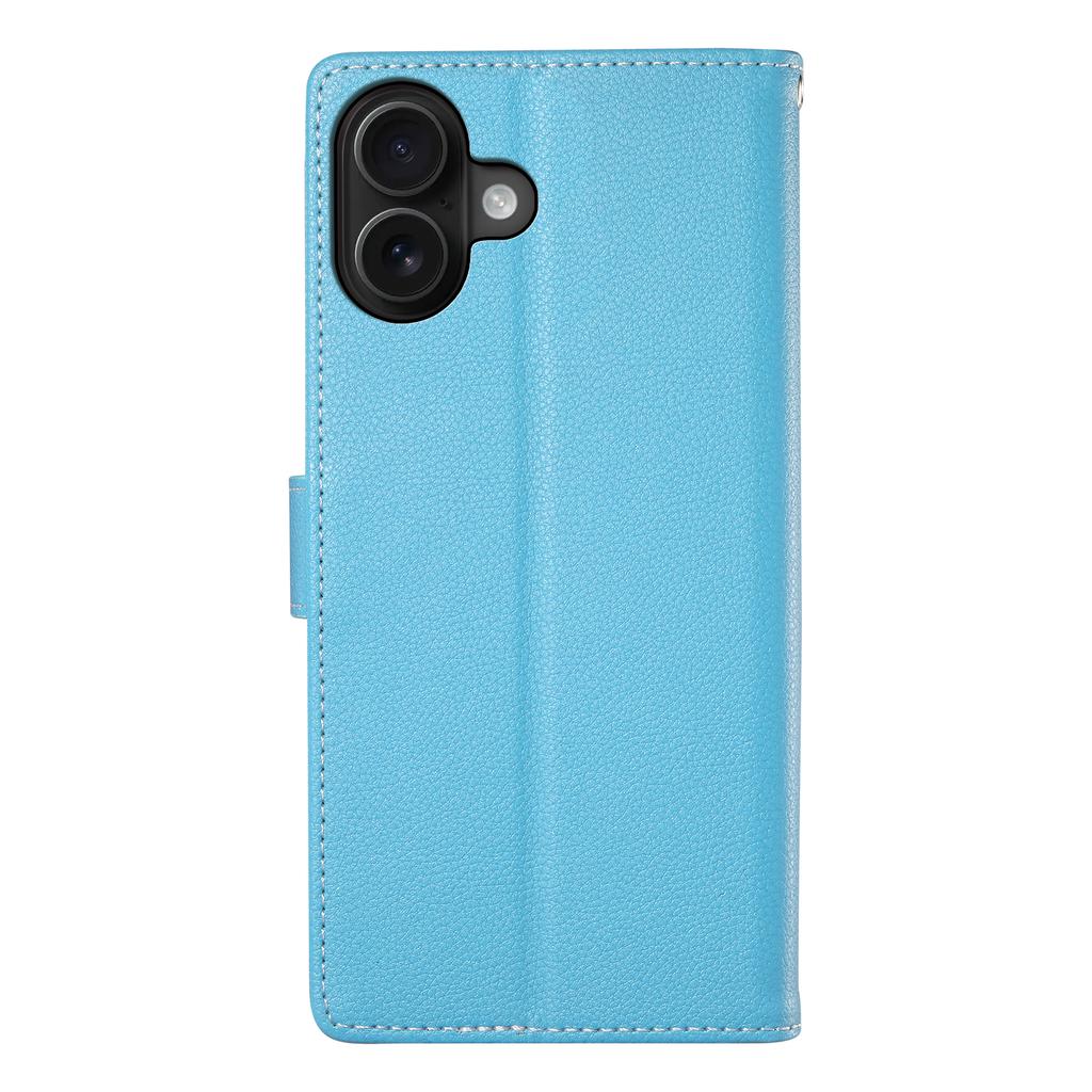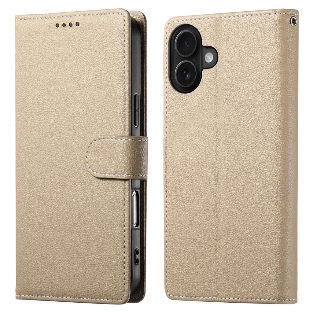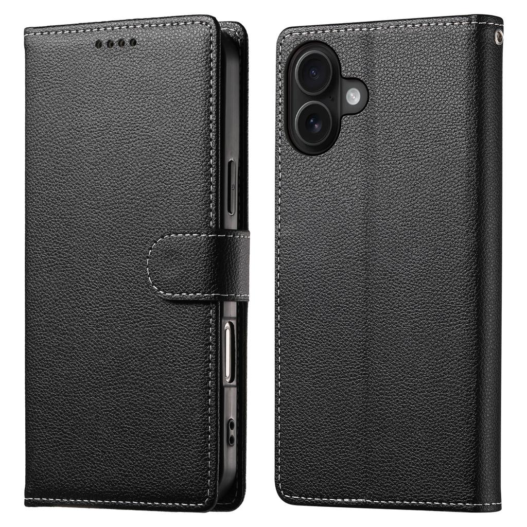 DF-012 For iPhone 16 Plus Case Litchi Texture Leather Wallet Stand Phone Cover