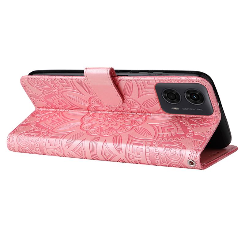 Кожаный чехол для Motorola Moto G04 4G/G04s 4G/G24 4G/E14 4G с тиснением подсолнуха, кошелек, чехол для телефона