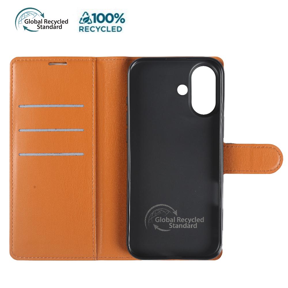 For iPhone 16 Plus Stand Case Biobased Eco-Friendly RPET RPVB Slim Phone Cover with Wallet