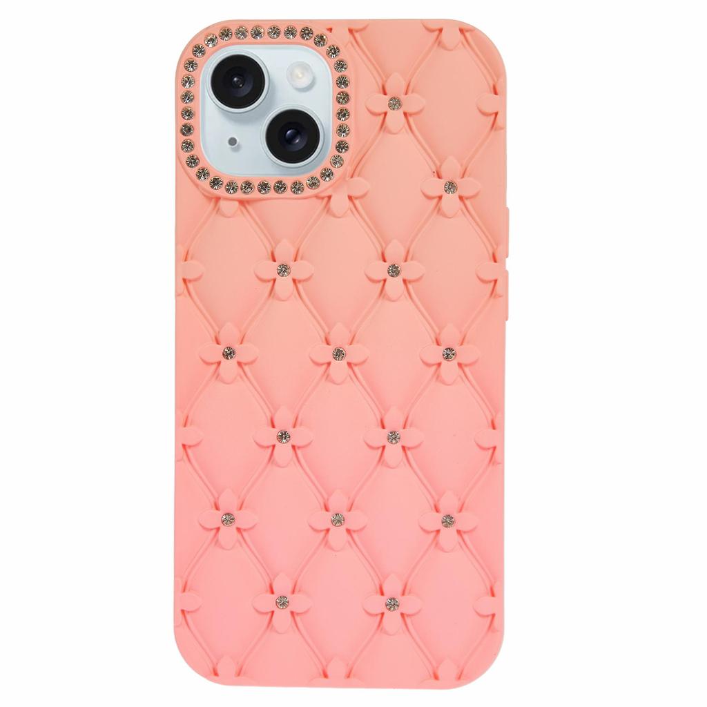 For iPhone 15 Case Rhinestone Decor Rubberized TPU Phone Cover