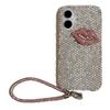 Чехол для iPhone 16 с ремешком, полностью украшенный стразами, декор в виде губ, задняя крышка телефона из ТПУ+ПК
