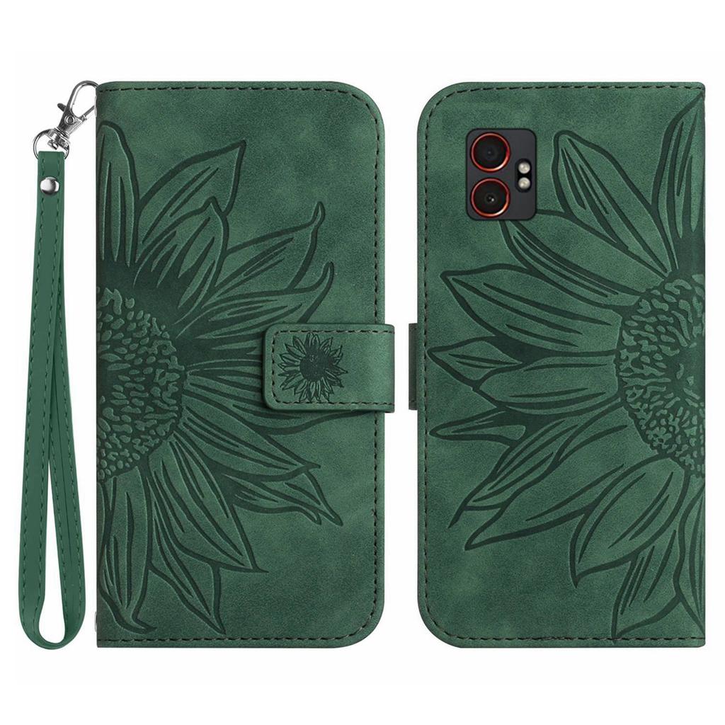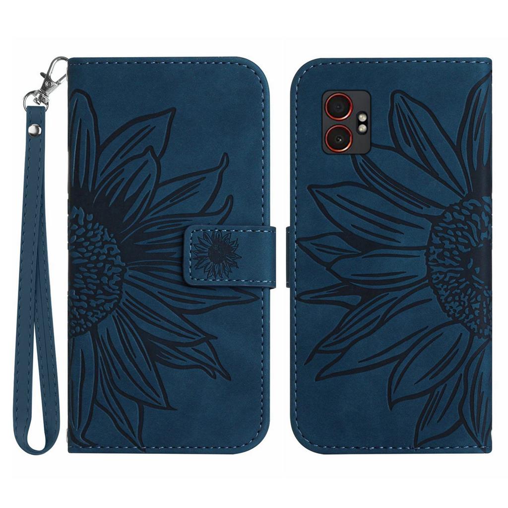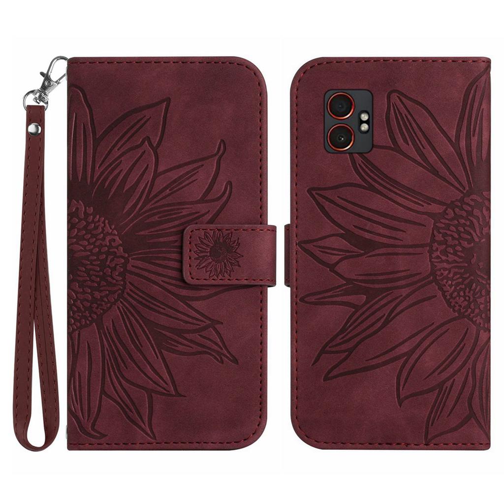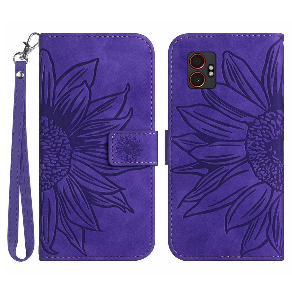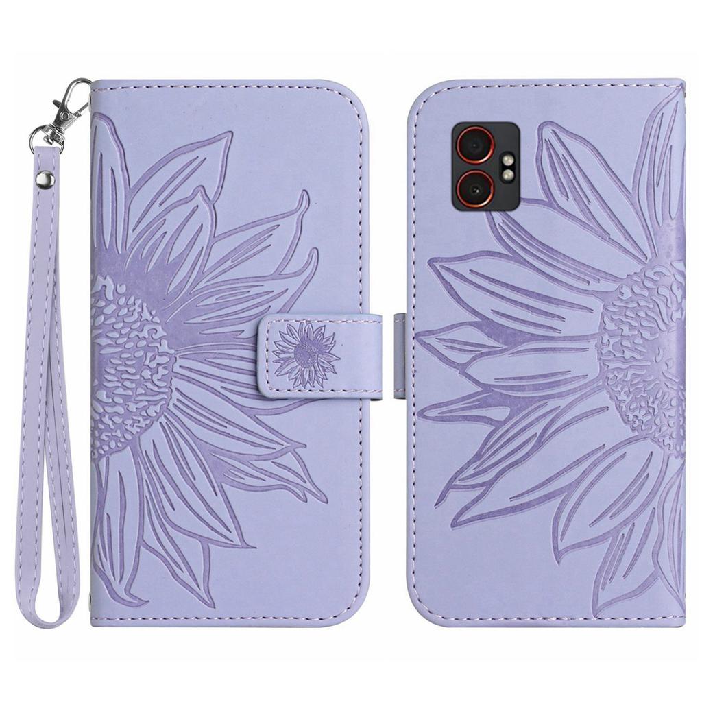 For Samsung Galaxy XCover7 Pro Case Sunflower Imprint Leather Wallet Phone Cover with Wrist Strap