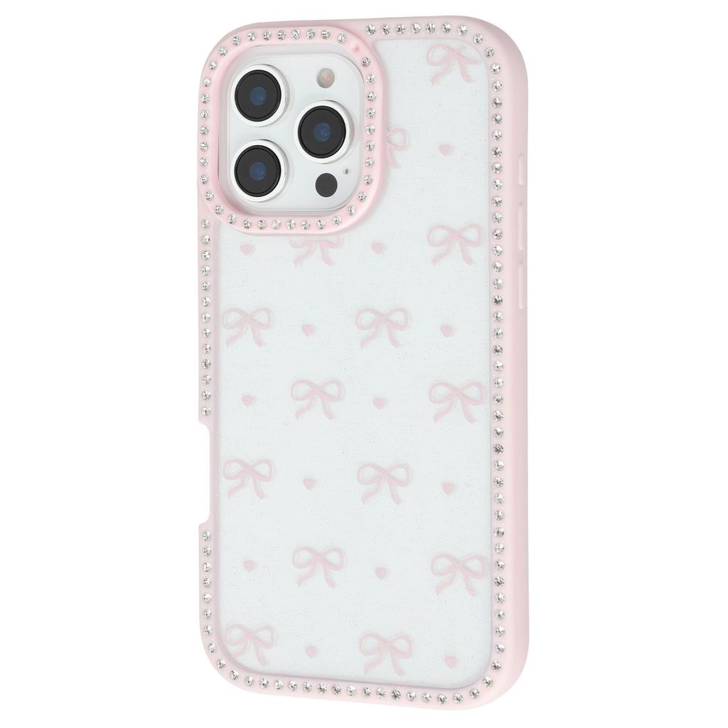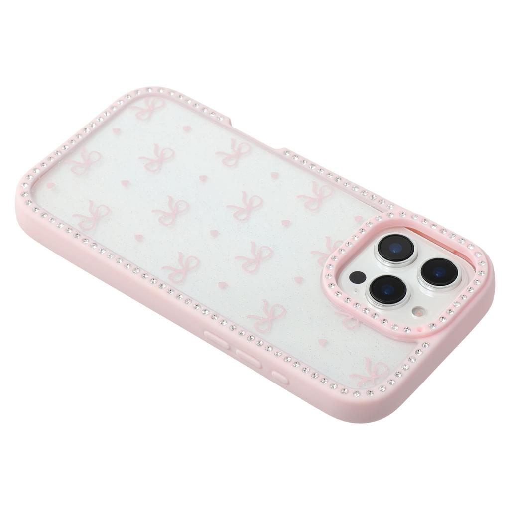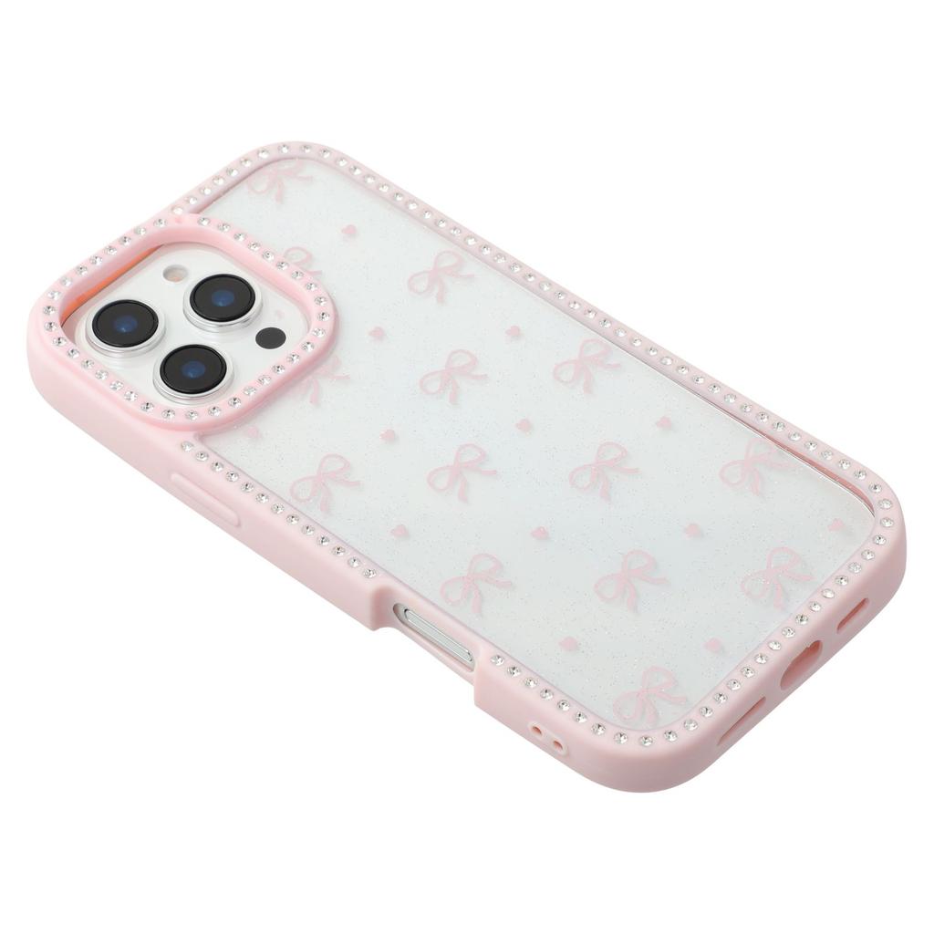 For iPhone 16 Pro Max Case Epoxy Design TPU+PC Phone Cover with Bowknot Pattern,Rhinestone Decor