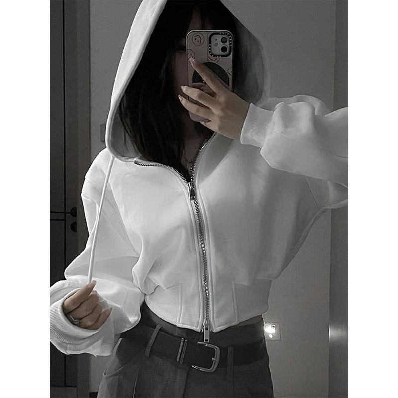 Повседневная короткая толстовка с капюшоном, женская толстовка с капюшоном на молнии, однотонная толстовка Harajuku с длинным рукавом, облегающий укороченный топ, женская куртка, пальто