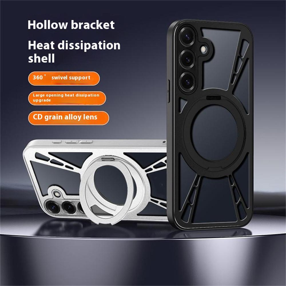 For Samsung Galaxy S25+ Case Magnetic Kickstand Hollow Heat Dissipation Silicone+PC+Metal Bumper Phone Cover