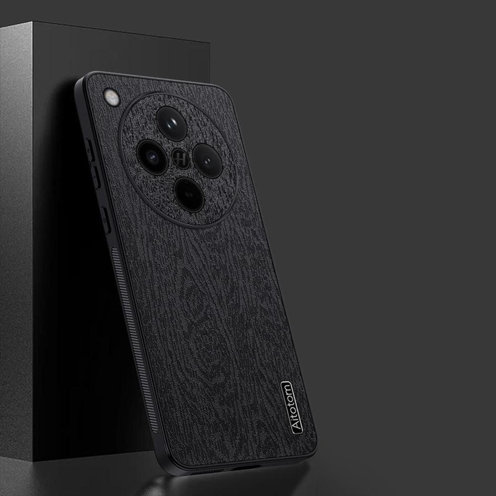 For Oppo Find X8s+ 5G Case Wood Texture PU Leather Coated PC TPU Phone Cover
