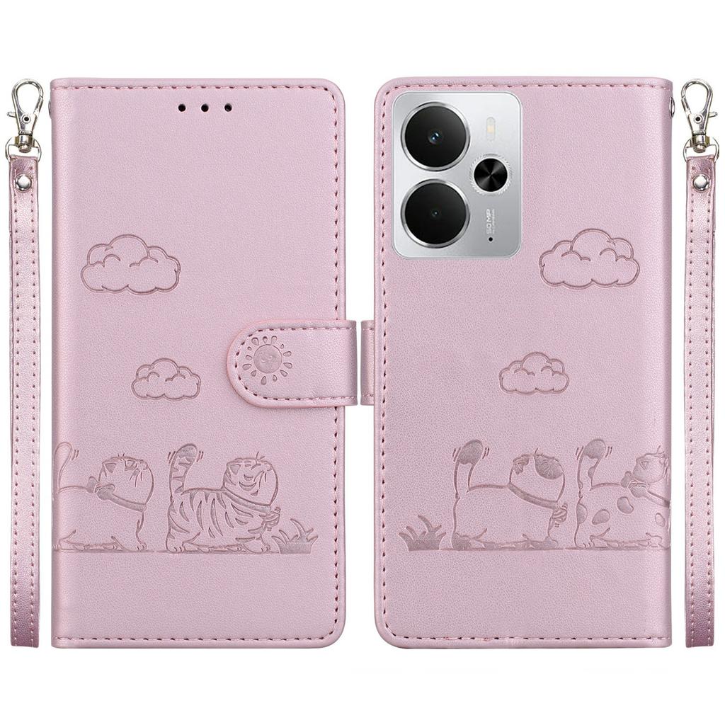 Чехол для Realme 14 5G с блокировкой RFID, рисунок котенка, ТПУ+ПУ кожа, чехол для телефона
