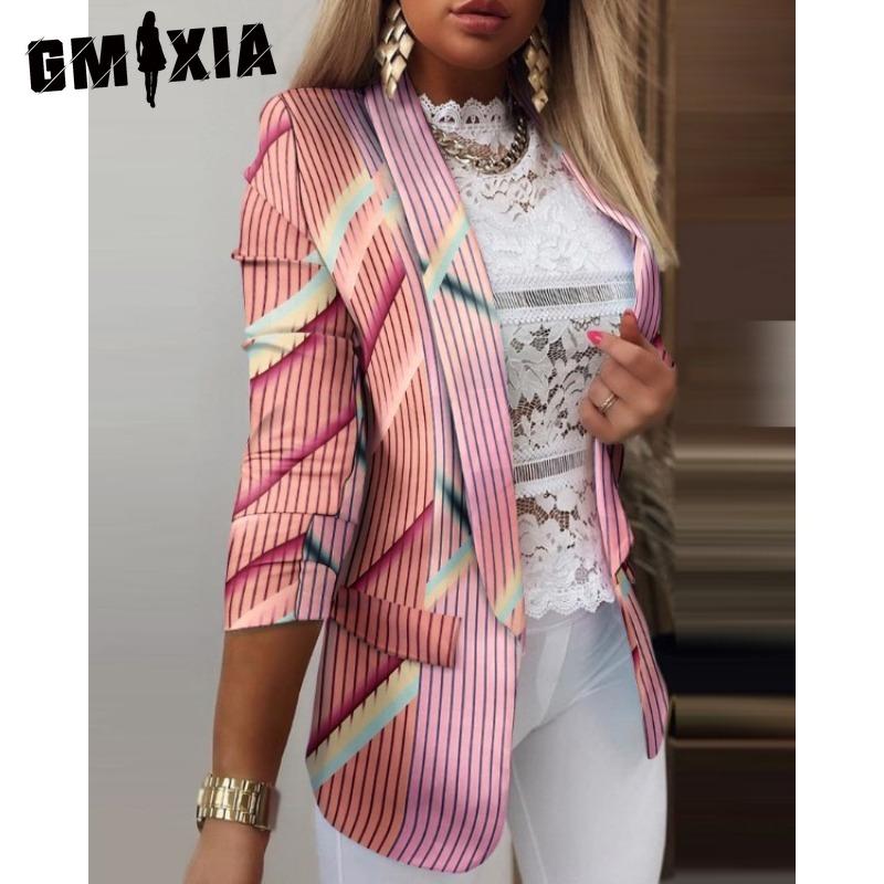 GMXIA Женские винтажные повседневные куртки и пальто с решетчатым принтом, осенне-зимние куртки-поло с длинными рукавами и воротником