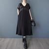 DIMANAF Новое летнее платье больших размеров 2025 для женщин, черное винтажное повседневное платье с V-образным вырезом, свободное платье макси — купить товар онлайн с бесплатной доставкой по всему миру!