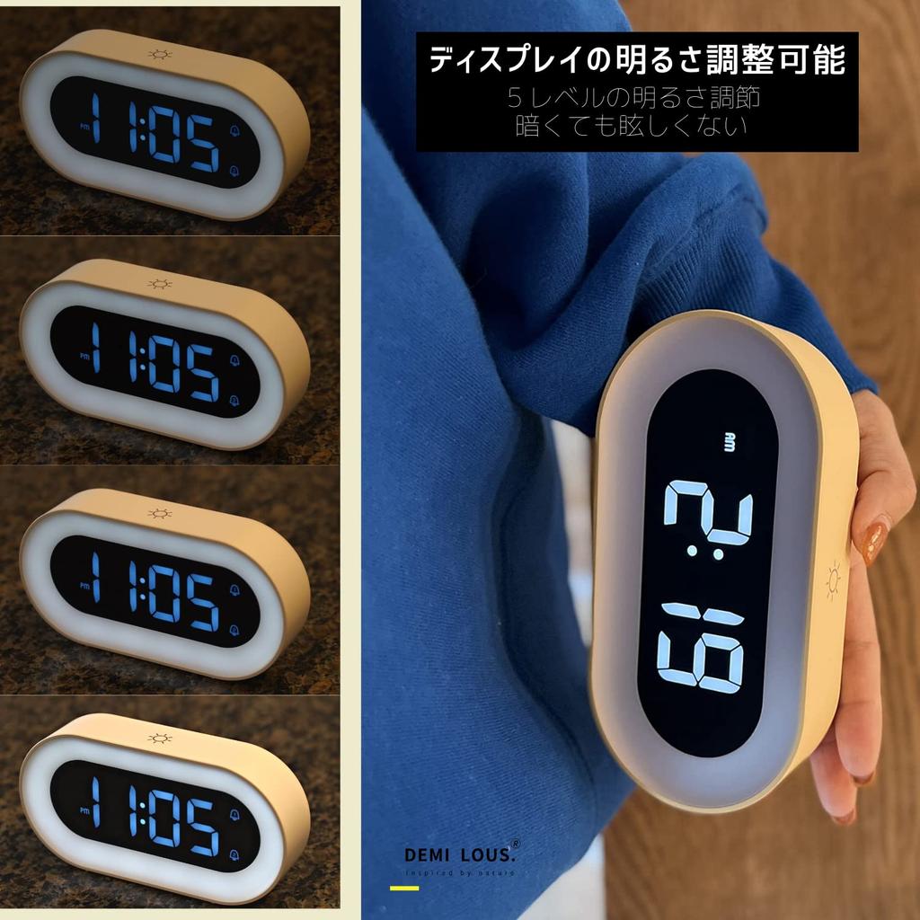 DEMI Будильник Свет Цифровые LED Часы Настольные Часы Перезаряжаемые через USB Бесступенчатая Регулировка Яркости Прикроватный Светильник Настольные Часы Различные Будильники Музыка Функция Повтора